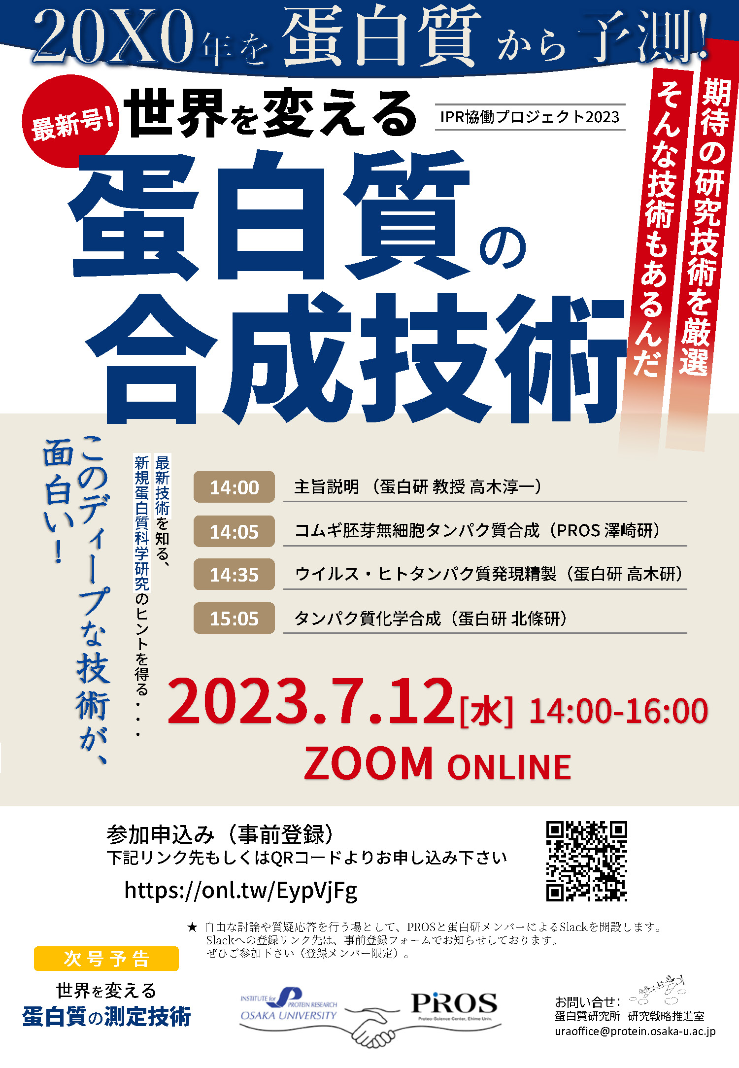 蛋白研x愛媛大PROS共働プロジェクト:最新号「世界を変える蛋白質の合成技術」を開催します。(終了しました)