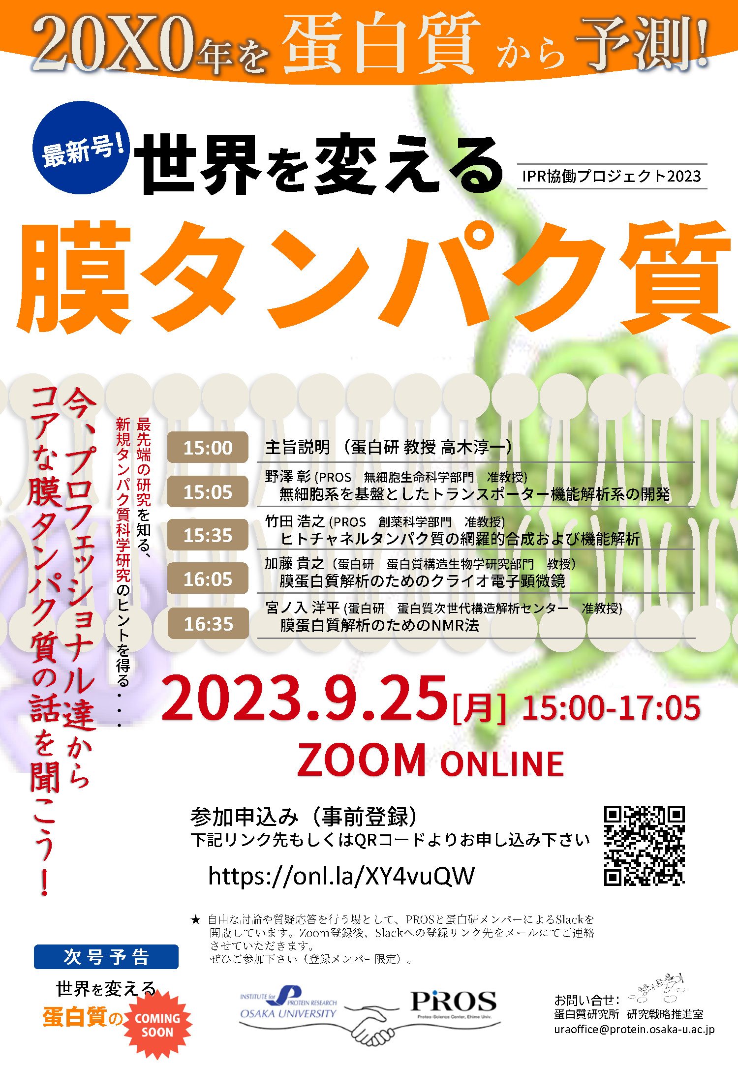 蛋白研x愛媛大PROS共働プロジェクト:最新号「世界を変える膜タンパク質」を開催します。(終了しました)